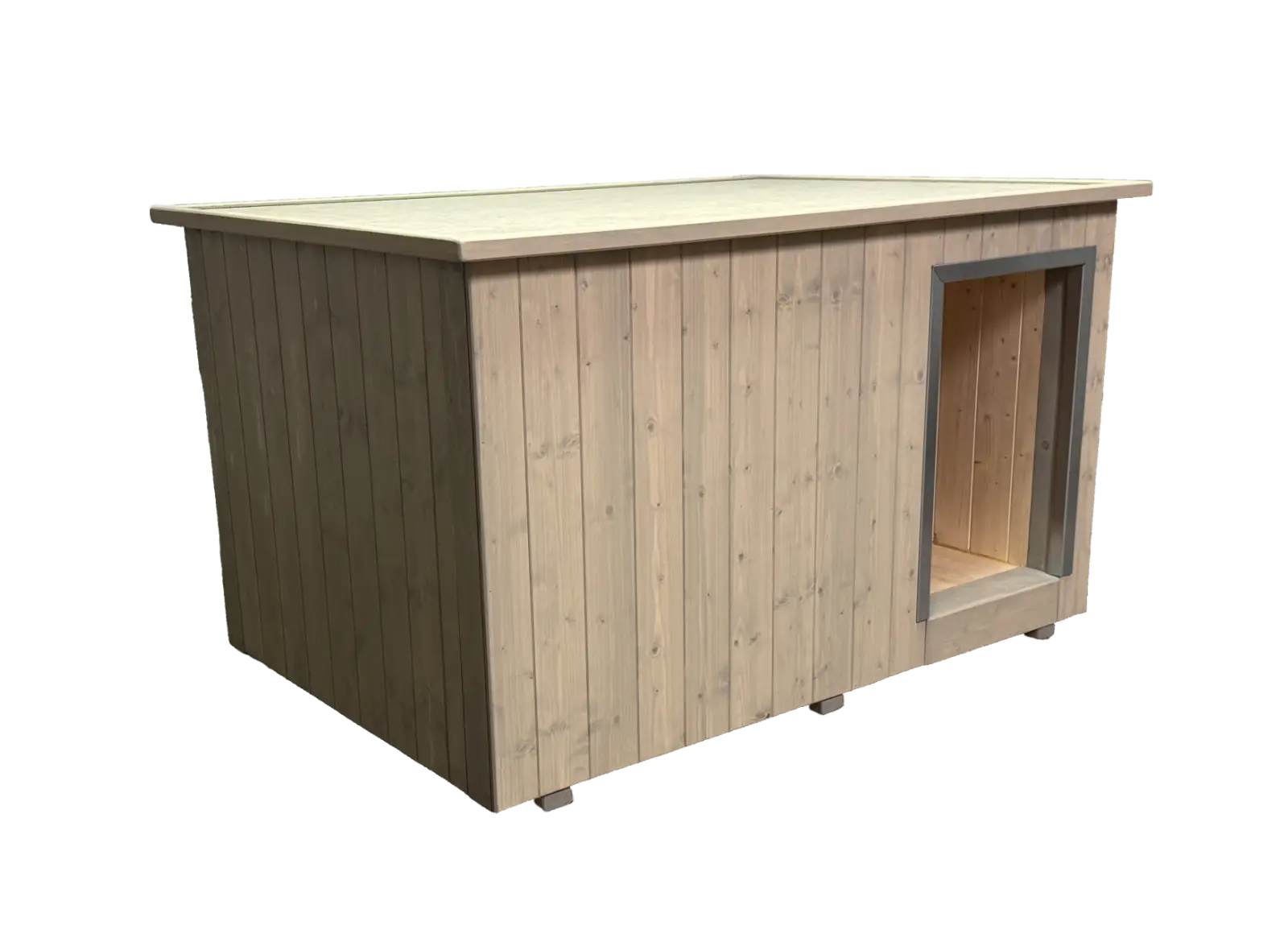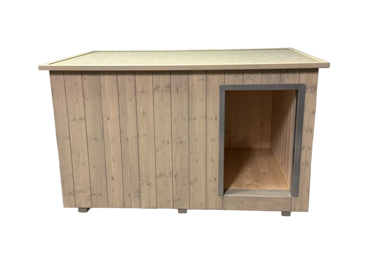 Kvalitní psí bouda do kotce velká zateplená s rovnou střechou, zateplení polystyrenem o síle 4 nebo 6 cm. Celková síla stěny 6,5 – 8,5 cm. Snadné čištění vnitřního prostoru, odnímatelná střecha i přední stěna a navíc múžete boudu kdykoliv rozložit a opětovně složit. Bouda do kotce je postavena na nožkách a je tak chráněna proti vlhkosti od země. Přepravována je na speciální paletě, kterou lze použít jako podstavec pod boudu.